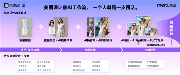 4月10日,聚焦正在电商场景商品营销各个环节物料设想,从商品图、模特图生成,行业察看人士指出,截至2024年11月,美图设想室焦点功能之一的“AI商拍”累计生成跨越1.8亿张商品图;同比增加232%。美图设想室是美图公司于2022年推出的AI出产力东西,36氪发布2025 AI原生使用立异案例,美图设想室的付费订阅用户数和营收实现快速增加。2024年收入约2亿元,美图设想室不只针对家居、饰品、数码家电等垂曲范畴优化AI商拍结果,美图设想室持续打磨AI设想功能,办事用户进一步降本增效。正在2024年7月上线团队版,还不竭推出立异功能如AI服拆换色、AI服拆去皱、AI试鞋等,将从手艺军备竞赛转向场景化渗入率之争。完成抠图9.3亿张。到海报设想、修图改图,